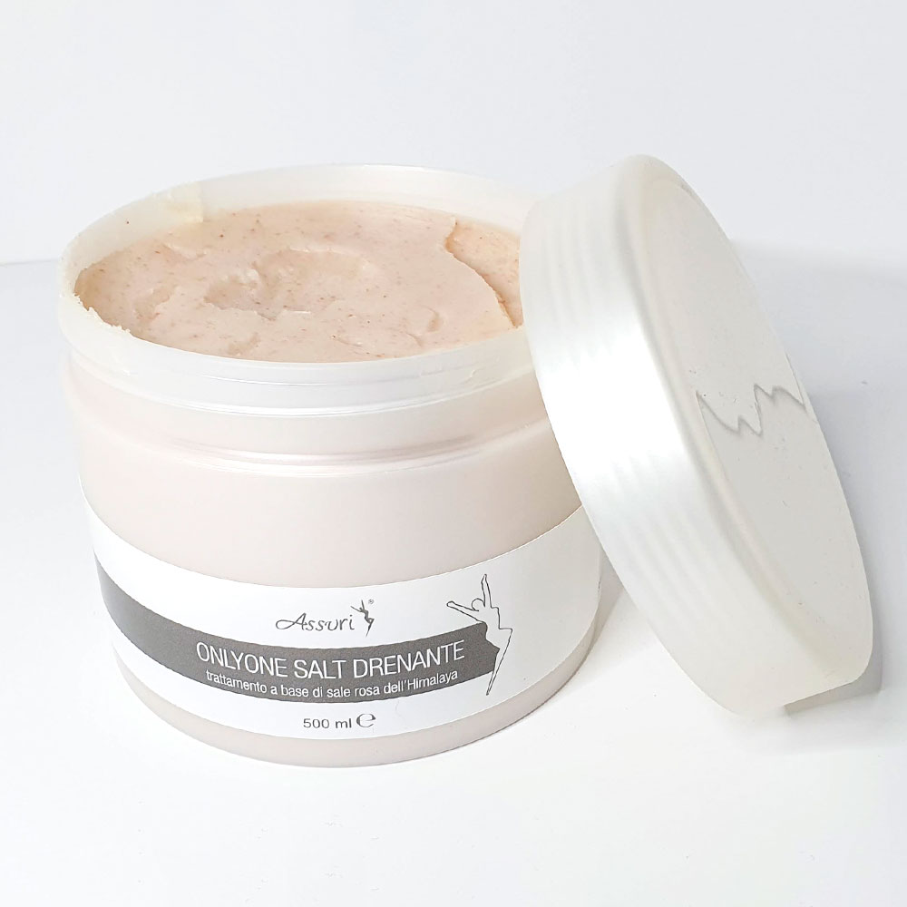 OnlyOne Salt Drenante è ricco di sostanze emollienti che ammorbidiscono la cute permettendo la delicata azione meccanica esfoliante dei cristalli di sale rosa dell’Himalaya, che gradualmente si sciolgono favorendo una azione esfoliante e drenante, mirata agli inestetismi della cellulite.